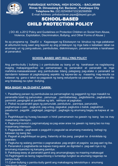 As a form of support for the Executive Order No. 26 known as National Greening Program of the Philippines, s. On June 24, 2022 (Friday), Paranaque National High School-Baclaran will organize a project called “Tree Planting Hands-On Activity”, coordinated by partner clubs and organizations under the direction of the Campus Integrity Crusaders.